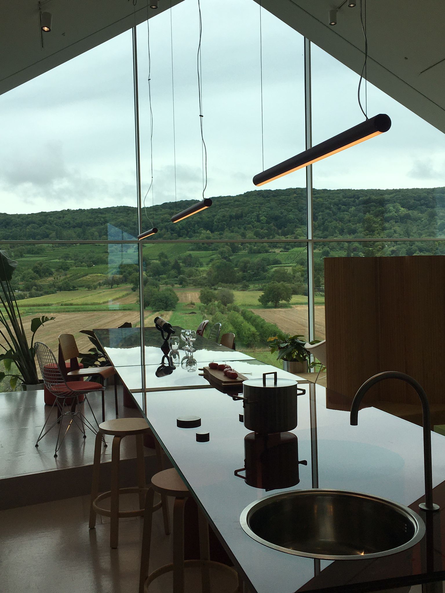 Wir besichtigen die Vitra-Ausstellung und essen alle im Restaurant zu Mittag.