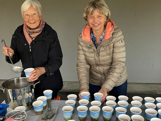 Landfrauen verteilen Pausenmilch