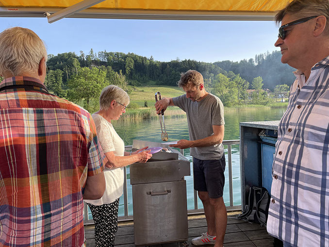 Wir erleben den Wohlensee aus einer neuen Perspektive und geniessen einen entspannten Abend auf dem Floss, dank dem Schutzverband Wohlensee.